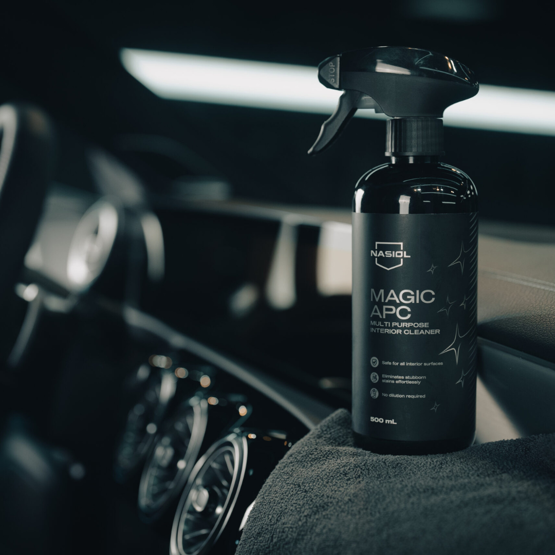 Magic APC este potrivit pentru scaune, tapițerie, bord, panouri de uși, vinil, plastic interior, covoare și alte textile din mașină.